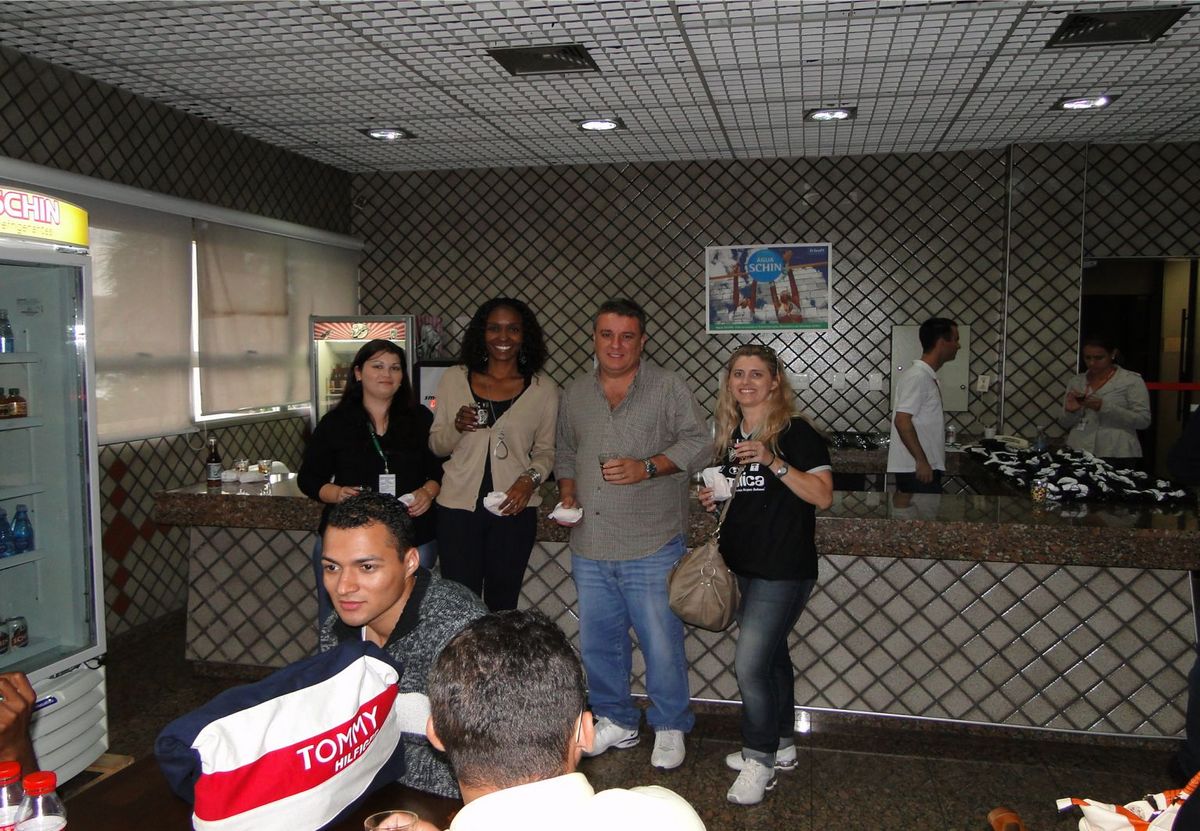 Professores em interação no lanche oferecido pela empresa (VIVIANA - RAQUEL - JAIME - CARLA )